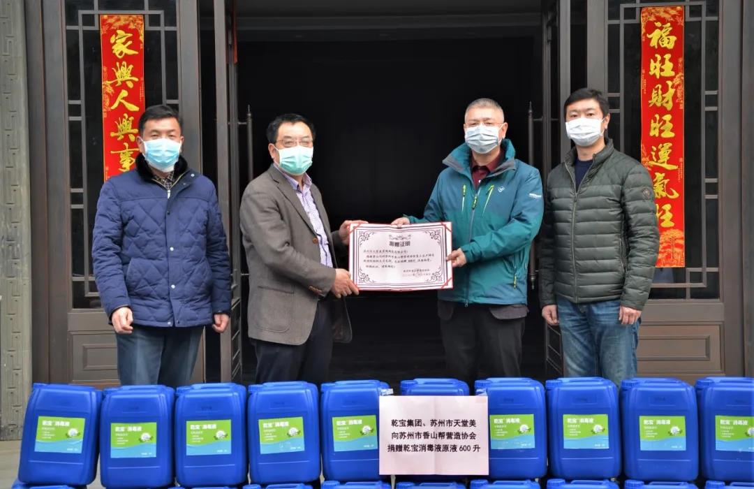 2020-02-26防疫與復(fù)工“兩手抓”——蘇州市天堂美景觀綠化工程有限公司向蘇州市香山幫營造協(xié)會捐贈消毒液